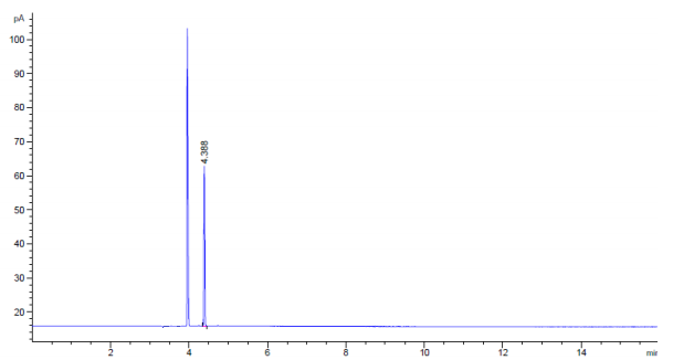 七、分析方法(僅供參考) 1.分析條件: 檢測器: GC-FID 色譜柱: HP-5(30m×0.32mm×0.25μm) 進樣口: 250°C 檢測器: 250°C 柱 箱: 40°C(2min)→5°C/min→100°C(1min) 2. 色譜圖