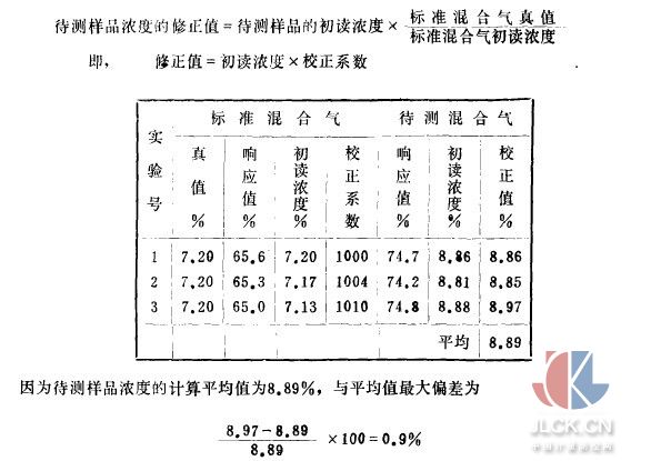 注:(1)本計算法假設(shè)分析儀的響應(yīng)曲線為線性,并通過原點(diǎn)。若其響應(yīng)曲線為非線性,則要用幾種標(biāo)準(zhǔn)混合氣進(jìn)行比較。