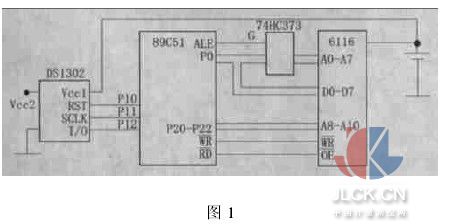 根據(jù)上面的時(shí)序圖,對(duì)DS1302操作的子程序如下,其中READ為單字節(jié)讀,WRITE單字節(jié)寫,BUS-TRD多字節(jié)讀。 RSTBIT P1.0;P1.0接RST端 SCLK BIT P1.1;P1.1接SCLK端 DAT BIT P1.2;P1.2接I/O端 BUSTRD:CLR SCLK;多字節(jié)讀 NOP ; SETB RST ;RST為1 MOV A,#0BFH ;多字節(jié)命令 ACALL WBYTE ;寫入命令 RLOP:NOP ACALL RBYTE ;讀出1字節(jié) MOV@R0,A ;讀出數(shù)據(jù)轉(zhuǎn)存 INC R0 ;修改指針 DJNZ R3,RLOP ;直到讀完為止 CLR RST ;RST為0 RET WRITE:CLR SCLK;單字節(jié)寫,A寫入命令,R2 NOP;為寫入數(shù)據(jù) SETB RST ;RST為1 ACALL WBYTE ;寫命令字節(jié) MOV A, R3 ;寫入數(shù)據(jù)送A ACALL WBYTE ;寫數(shù)據(jù) CLR RST ;RST為0 RET READ:CLR SCLK;單字節(jié)讀,A讀出的命令,R NOP ;為數(shù)據(jù) SETB RST ;RST為1 ACALL WBYTE ;寫命令字節(jié) ACALL RBYTE ;讀出1字節(jié)數(shù)據(jù) CLR RST ;RST為0 RET WBYTE:MOV R7,#08H;移入1字節(jié)數(shù)據(jù) WBYTE1:RRC A ;輸出位送C MOV DAT,C ;C送到I/O端 SETB SCLK ;SCLK上升沿 CLR SCLK DJNZ R7,WBYTE1;8位輸出完為止 RET RBYTE:SETB DAT ;移出1字節(jié) MOV R7,#08H ;R7為位數(shù)計(jì)數(shù)器 LOP:CLR SCLK ;產(chǎn)生下降沿 MOV C,DAT ;讀取數(shù)據(jù)位 SETB SCLK RRC A ;讀取數(shù)據(jù)位送A DJNZ R7,LOP ;直到8位讀完 RET END 3掉電記錄設(shè)計(jì) 對(duì)掉電記錄的主要電路如圖1所示,RAM6116和實(shí)時(shí)鐘DS1302的備用電源由電池供電,DS1302內(nèi)有涓流充電電路,掉電后6116可以保存數(shù)據(jù),DS1302實(shí)時(shí)鐘可以繼續(xù)工作。 3.1影子時(shí)鐘設(shè)計(jì) CPU的T0作為定時(shí)器,采用方式1,設(shè)計(jì)定時(shí)時(shí)間100ms,其中斷程序再計(jì)數(shù)10次,即產(chǎn)生一個(gè)秒的定時(shí)器。在每個(gè)秒的中斷程序中將DS1302的時(shí)鐘數(shù)據(jù)(7字節(jié))讀出,再寫入DS1302的RAM內(nèi),程序運(yùn)行時(shí)DS1302內(nèi)RAM的數(shù)據(jù)(前7字節(jié))就是影子時(shí)鐘,它跟隨DS1302的時(shí)鐘變化而變化。