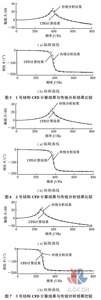 (1)CFD數(shù)值計算結(jié)果與傳統(tǒng)分析結(jié)果一致,但共振頻率略低于傳統(tǒng)分析結(jié)果,且在高頻段其幅值略小于傳統(tǒng)分析結(jié)果。