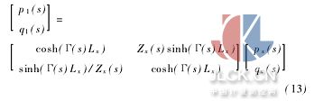 傳統(tǒng)上,1端p1、q1和x處px、qx之間的頻率特性關系為[8]