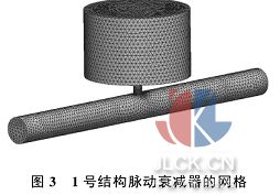 圖3所示為表3中1號共振腔結(jié)構(gòu)脈動衰減器的網(wǎng)格模型。