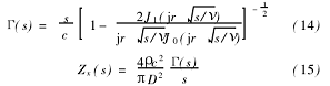 如果考慮頻率相關的摩擦損失,該段管路的Γ(s)和Zx(s)分別為[8]