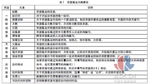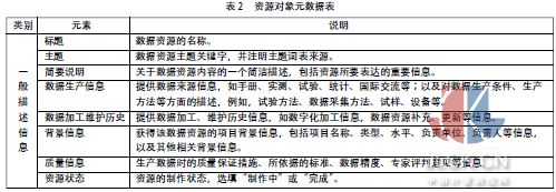 3.3 儀器儀表科學數(shù)據(jù)資源元數(shù)據(jù)表 元數(shù)據(jù)最基本的單元是元素。由于元素具有結(jié)構(gòu)簡單、通俗易懂、描述靈活等特點而被廣泛用于各領(lǐng)域的資源描述。本研究中對資源集合元數(shù)據(jù)設(shè)計了如表1中所示的元素, 對資源對象元數(shù)據(jù)設(shè)計的元素如表2所示。