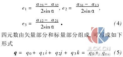 根據(jù)旋轉(zhuǎn)特征向量和旋轉(zhuǎn)角,定義四元數(shù)矢量部分和標(biāo)量部分如下