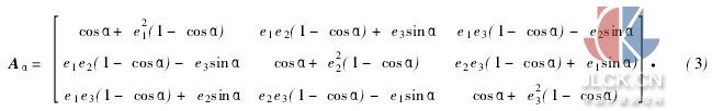 設(shè)方向余弦矩陣Aα的元素為aij,旋轉(zhuǎn)特征向量e的元素可表示為