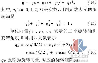 關(guān)于這個最優(yōu)問題,可以用基于四元數(shù)(quaternions)的非迭代算法,在三維情況下,可以用四元數(shù)(三個旋轉(zhuǎn)軸,一個旋轉(zhuǎn)角度)表示R3中的旋轉(zhuǎn),四元數(shù)有如下形式