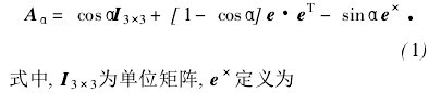定義e為旋轉(zhuǎn)特征向量,以e為旋轉(zhuǎn)軸,旋轉(zhuǎn)角度α,則方向余弦矩陣(即坐標(biāo)變換中的旋轉(zhuǎn)量)可表示為