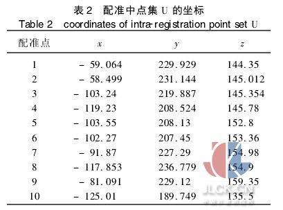 手術(shù)導(dǎo)航系統(tǒng)中,空間配準(zhǔn)(registration)主要用于手術(shù)前的計劃和手術(shù)中的處理[7,8]·通過對由位置傳感器確定的坐標(biāo)空間和術(shù)前多模態(tài)醫(yī)學(xué)圖像確定的坐標(biāo)空間配準(zhǔn),導(dǎo)航系統(tǒng)可以將術(shù)前重建所得的虛擬數(shù)據(jù)與術(shù)中空間位置的數(shù)據(jù)實(shí)時地聯(lián)系起來,這樣就消除了醫(yī)生僅憑主觀判斷將多模態(tài)醫(yī)學(xué)圖像與實(shí)際手術(shù)過程相匹配時可能引起的誤差,減小了手術(shù)的復(fù)雜性和危險性,縮短了手術(shù)時間[9]·空間配準(zhǔn)是一個坐標(biāo)空間和另一個坐標(biāo)空間一對一的映射或變換,即兩個不同空間中相對應(yīng)于同一醫(yī)學(xué)解剖特征的兩點(diǎn)之間的映射·空間配準(zhǔn)是手術(shù)導(dǎo)航系統(tǒng)中的一個十分關(guān)鍵的技術(shù)。
