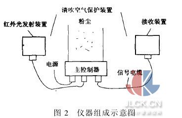 3硬件組成 儀器由紅外光發(fā)射裝置、接收裝置、主控制器、清吹空氣保護(hù)裝置和遠(yuǎn)程操作軟件組成,如圖2所示。