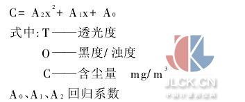 由于消光度和含塵量與塵粒的大小和密度以及測(cè)量位置有關(guān),所以其相關(guān)性必須通過(guò)稱重比對(duì)測(cè)量法來(lái)進(jìn)行確定,實(shí)際中按下式確定含塵量: