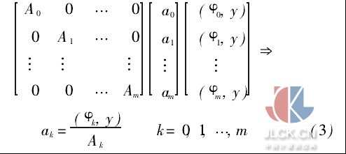 由表2可知,3階和4階的個(gè)別點(diǎn)擬合誤差較大,不能滿足流量檢測的精度要求。而如果增大擬合次數(shù),其系數(shù)矩陣不易于計(jì)算,在單片機(jī)中更難實(shí)現(xiàn)。因此,選取正交多項(xiàng)式為基作最小二乘擬合。假設(shè)測得的各實(shí)驗(yàn)點(diǎn)數(shù)據(jù)為(x0,f0), (x1,f1),…,(xn,fn),各數(shù)據(jù)點(diǎn)的權(quán)重均為1,選取的正交多項(xiàng)式簇為{φ0(x),φ1(x),…,φm(x)}。將基函數(shù)的系數(shù)矩陣變?yōu)閷顷?從而大大簡化計(jì)算,不需要解矩陣方程就可直接求解。