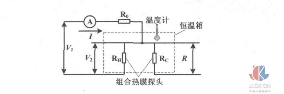 引言 熱式流量計(jì)是在早期熱線風(fēng)速儀的基礎(chǔ)上發(fā)展起來的一種新型流量檢測儀表,具有壓損低、測量范圍大、無可動部件、可靠性高以及可用于極低氣體流量監(jiān)測和控制等特點(diǎn),因此,被廣泛應(yīng)用于航空、航天、能源、汽車工業(yè)以及天然氣管道運(yùn)輸?shù)刃袠I(yè)[1]。根據(jù)敏感元件類型,熱式流量計(jì)可分為熱線敏感元件、熱膜敏感元件和組合鉑膜敏感元件共三種。在分析了三種敏感元件的優(yōu)缺點(diǎn),并對各種熱線、熱膜探頭進(jìn)行試驗(yàn)研究的基礎(chǔ)上[2-3],最終提出基于組合鉑膜探頭的熱式氣體流量計(jì)。實(shí)驗(yàn)結(jié)果表明,本文采用的流量傳感器對提高氣體流量測量的精度是有效的。 1溫度特性研究 流量傳感器以熱傳遞原理為基礎(chǔ),即在空氣流通管路中放置一個(gè)或多個(gè)發(fā)熱體(鉑膜或熱線),由于發(fā)熱體的熱量被流動的空氣帶走,發(fā)熱體本身會被冷卻,所以它的阻值會隨氣體流速發(fā)生變化。鉑膜周圍通過的空氣流量越大,被帶走的熱量就越多,探頭的阻值變化也就越大。鉑膜式空氣流量計(jì)就是利用鉑電阻與空氣之間的這種熱傳遞現(xiàn)象進(jìn)行空氣流量測量的。 除了氣體的流量大小,氣流的溫度對鉑膜電阻的散熱也有很大影響,造成流量計(jì)的輸出在流量恒定的情況下也會隨氣流溫度的變化而變化。為了使流量傳感器的輸出僅隨流量變化,無論是傳統(tǒng)的熱分布型質(zhì)量流量計(jì),還是新型的浸入型質(zhì)量流量計(jì),在設(shè)計(jì)時(shí)必須考慮熱式探頭的溫度補(bǔ)償。而補(bǔ)償電路的設(shè)計(jì)與氣流溫度對鉑膜電阻的影響量即鉑膜電阻的溫度特性有關(guān)。通過對上文的分析可知,對鉑膜探頭的溫度特性研究極為重要。溫度特性實(shí)驗(yàn)方案如圖1所示。