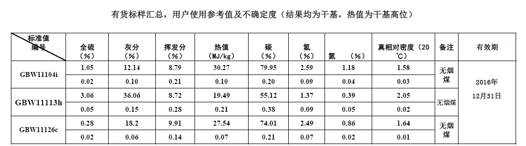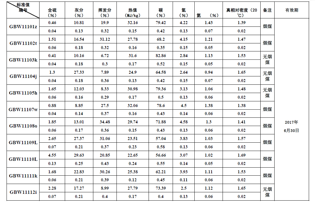 最新煤物理性質(zhì)和化學(xué)成份標(biāo)準(zhǔn)物質(zhì)量值信息